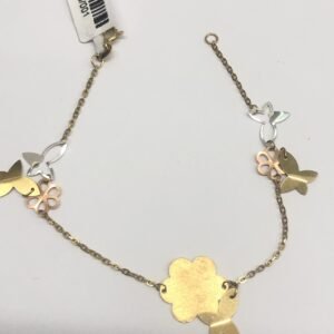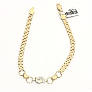 PULSERA YING YANG Y CORAZONES EN ORO 14K CON BROCHE DE PERICO