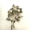 PRENDEDOR EN PLATA LEY .925 FORMA FLOR CON DOS PERLAS Y SINTETICOS DE COLOR